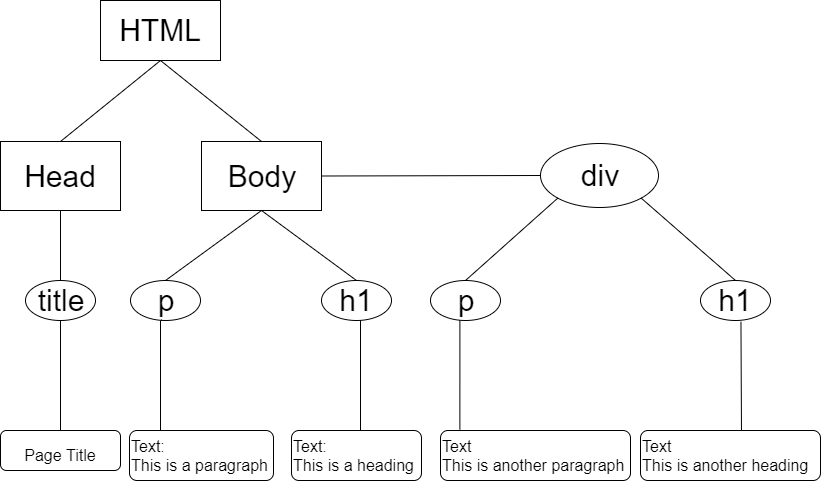 <html>...</html> tags are the container for all other HTML elements.<head>...</head> tags contain meta data which are not directly visible on the web page.<body>...</body> contains everything we can see such as text, links, images, tables, lists, etc. This is the most relevant part for web scraping. <body> <h1>This is a Heading</h1> <p>This is a paragraph.</p> <div> <h1>This is another Heading</h1> <p>This is another paragraph.</p> </div> </body>
